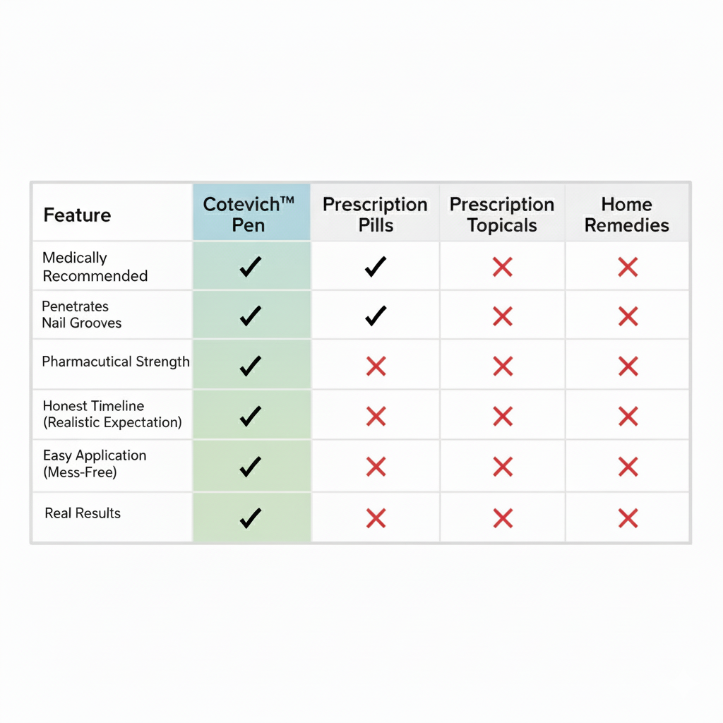 Cotevich is explicitly formulated to penetrate the nail plate and kill infection at the source. No disclaimers. No tricks.