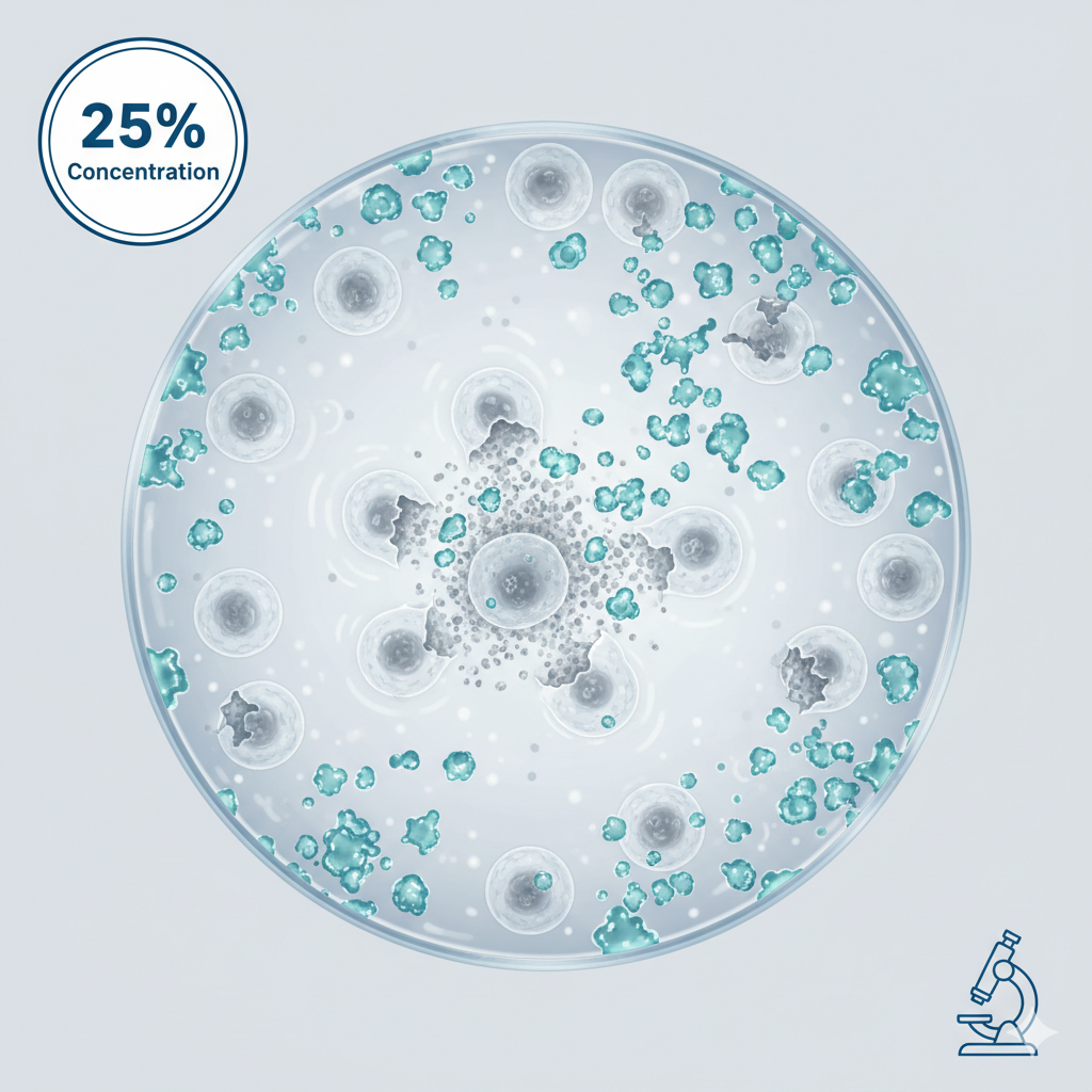 - 25% pharmaceutical strength (vs. typical 0.1-1%)