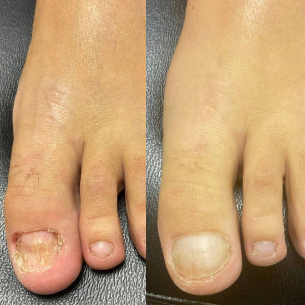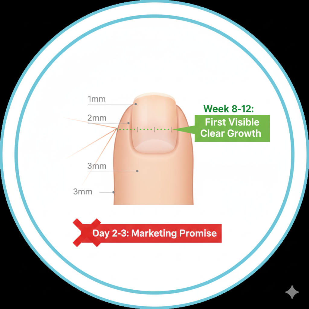 That's biology. Nails grow 1mm/month. Fungus lives underneath. The treatment has to penetrate, kill fungus, then wait for clear nail to grow.