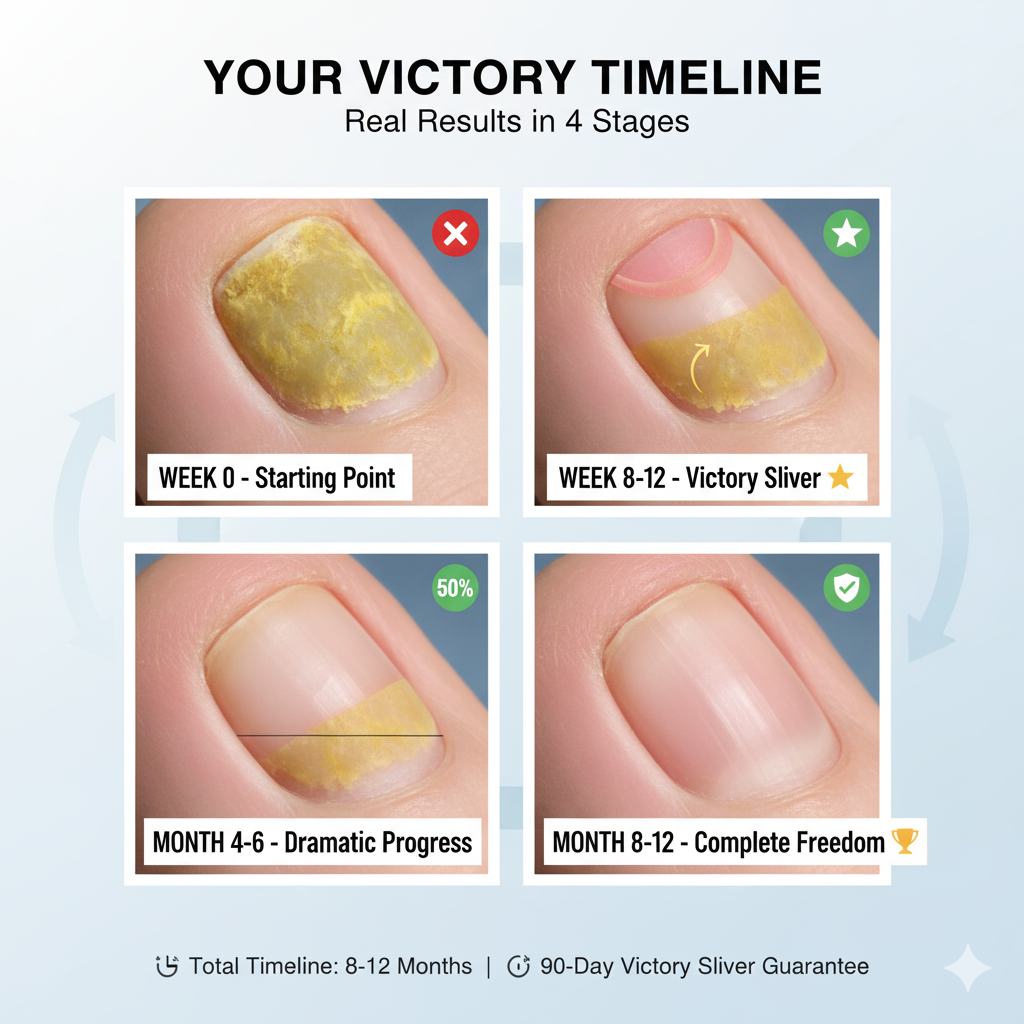 - Weeks 1-8: Working under the nail (no visible change—normal)