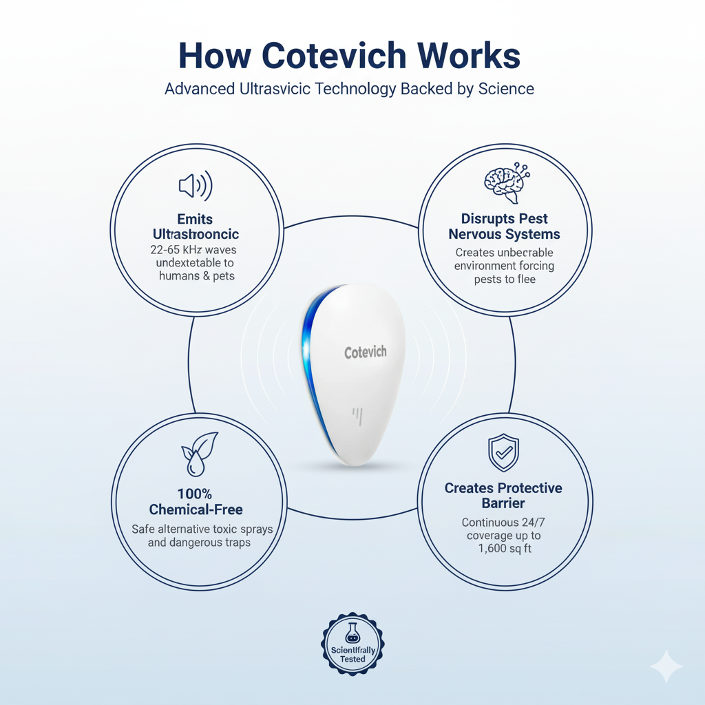 Convenient & Effortless: No complicated setups or maintenance. Just plug it in and let Cotevich do the work, keeping your home pest-free effortlessly.