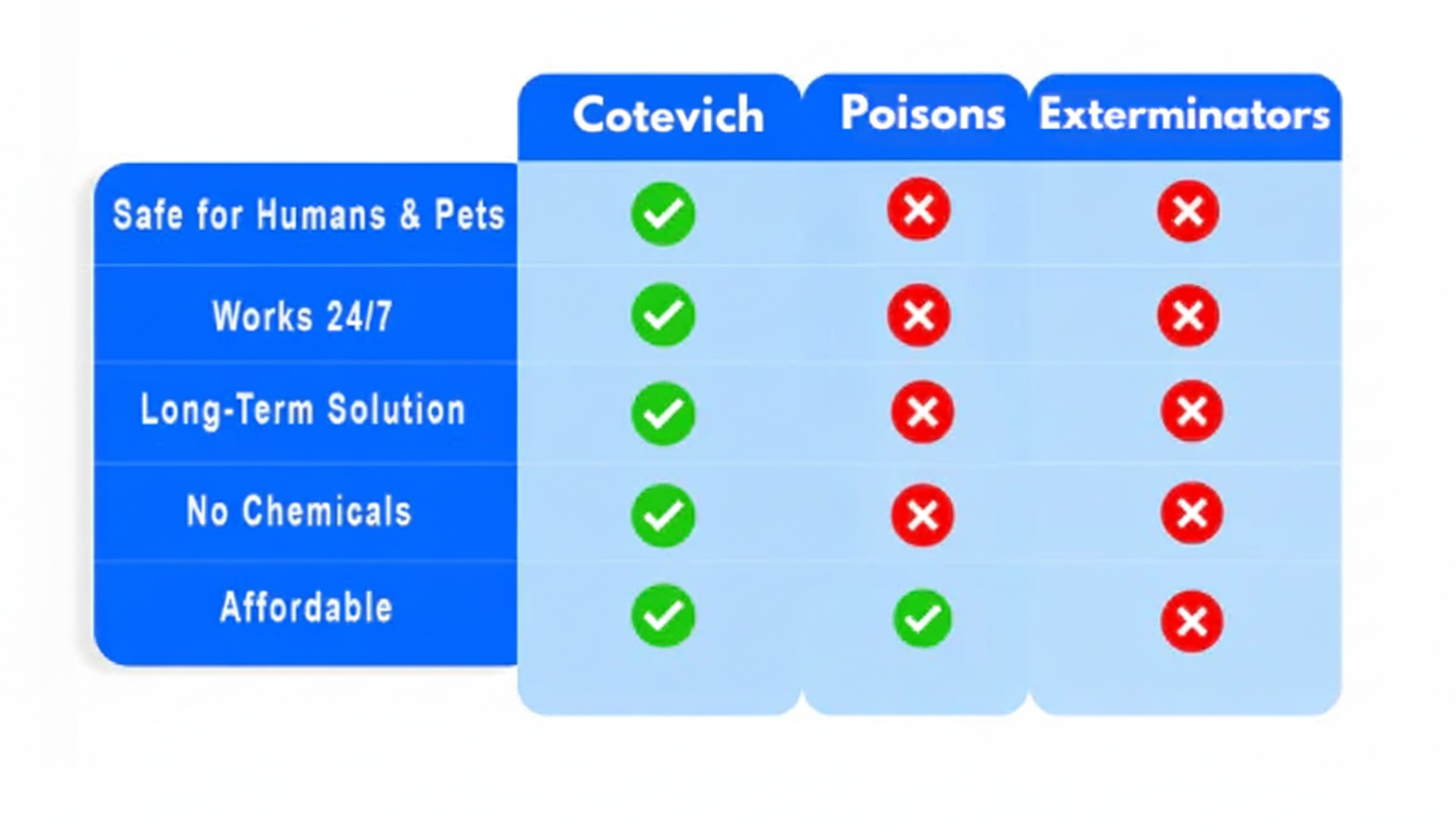 Cost-Effective: Save money by avoiding expensive exterminator services. Cotevich offers a one-time investment for long-term peace of mind.