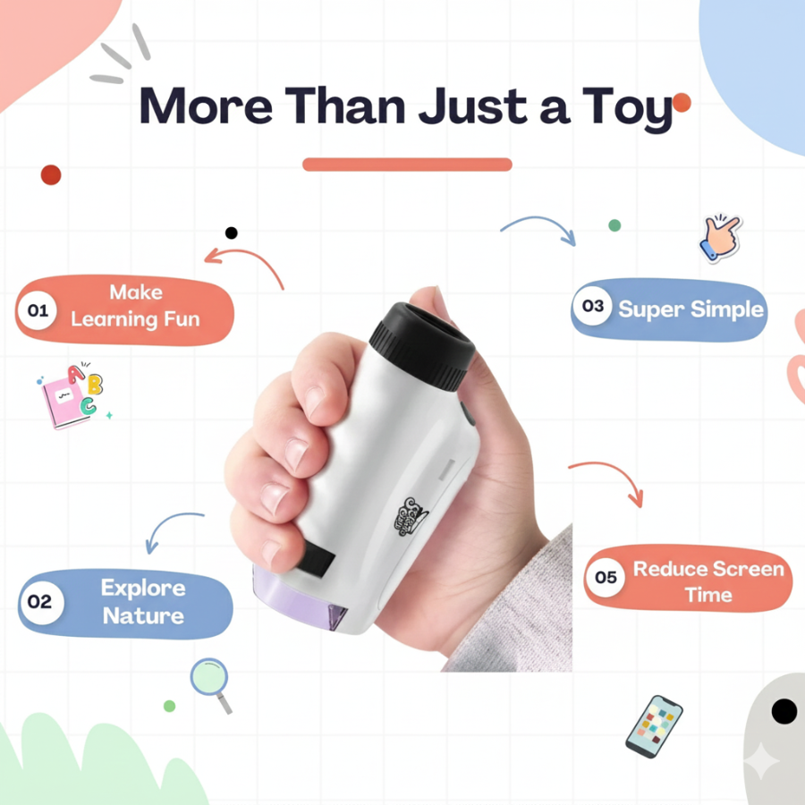 It allows kids to explore their world up close, building curiosity and problem-solving skills.